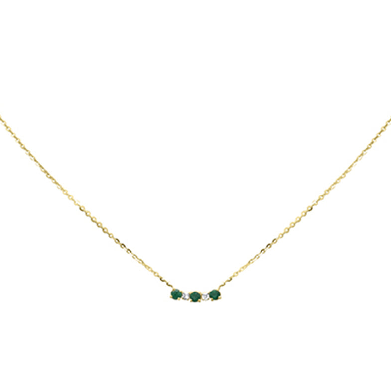 .22ct G SI 14K Yellow Gold Diamond & Emerald Gemstone Pendant Necklace 16+2" Long
