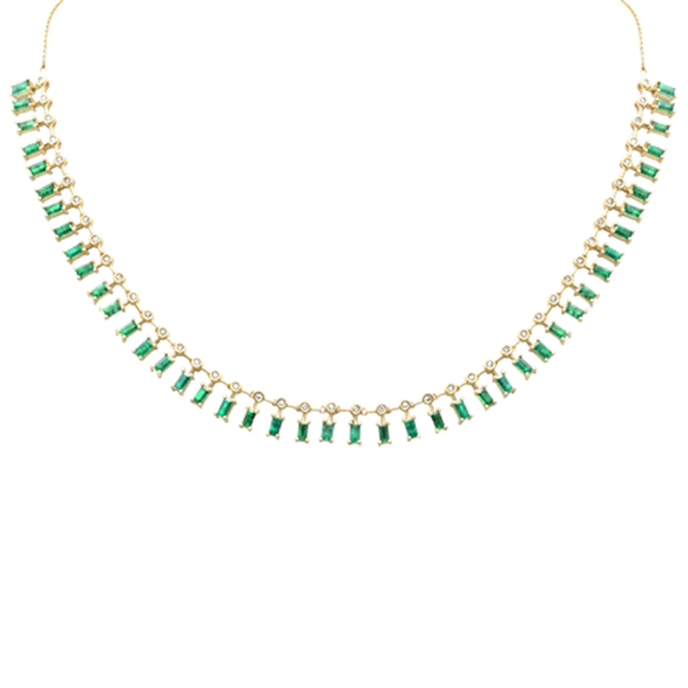 SPECIAL! 9.22ct G SI 14K Yellow Gold Diamond & Emerald Dangling Necklace 18" Long