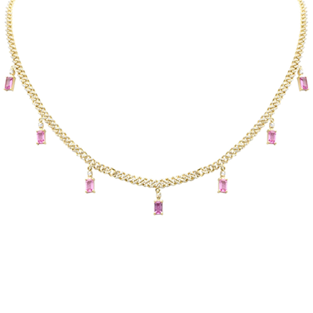 SPECIAL! 3.47ct G SI 14K Yellow Gold Diamond & Pink Sapphire Cuban Link Necklace 12" + 4" EXT