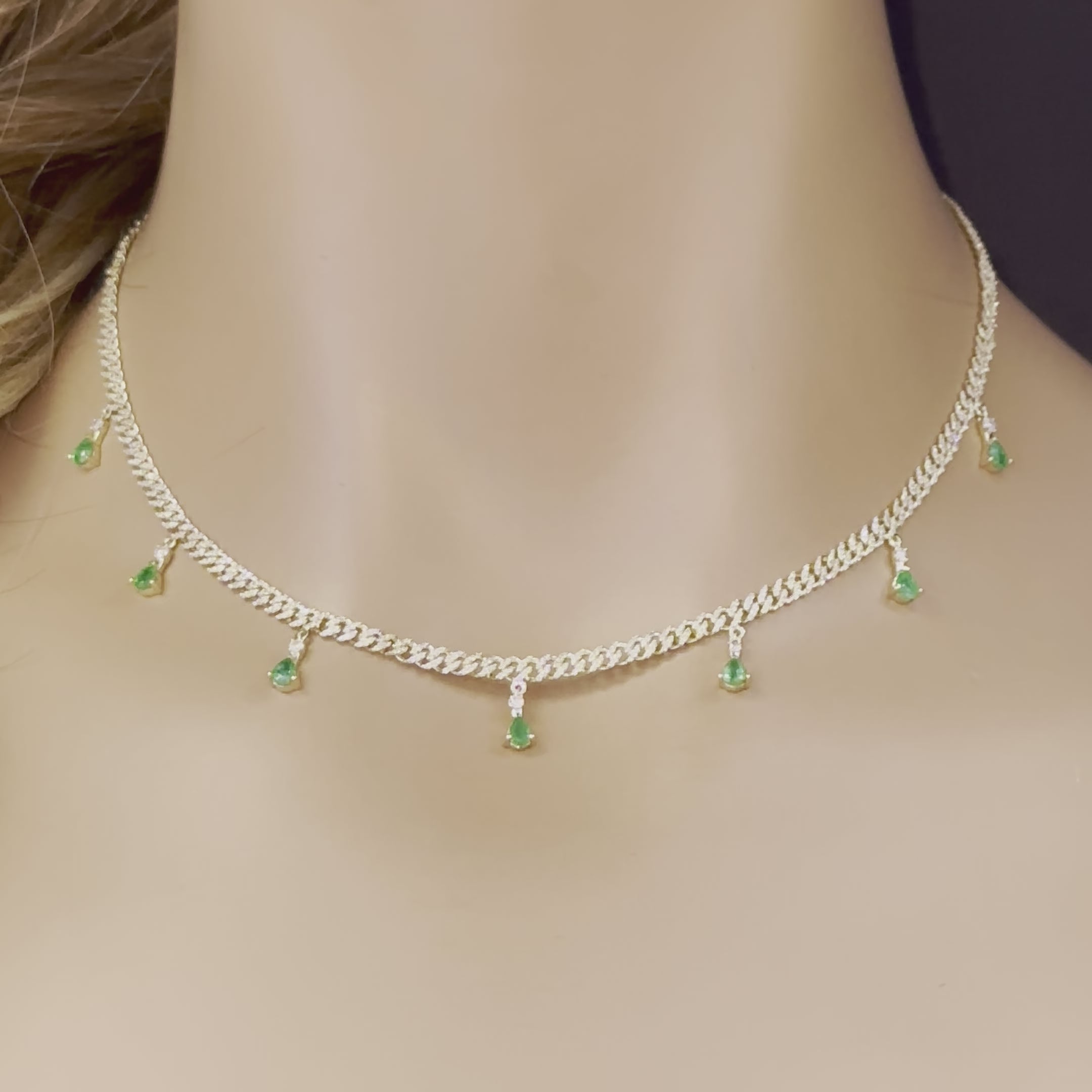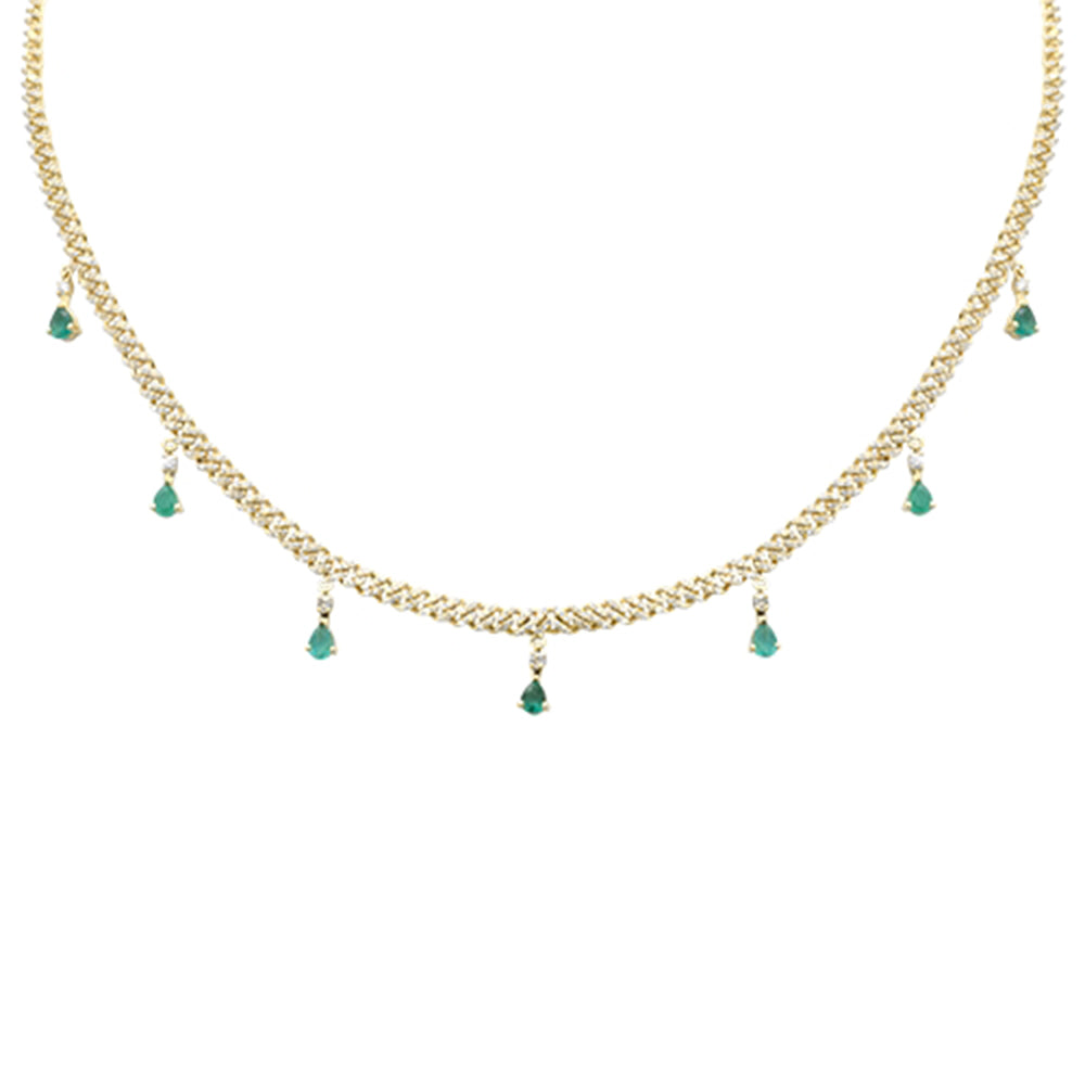 SPECIAL! 2.22ct G SI 14K Yellow Gold Diamond & Emerald 3MM Cuban Link Necklace 12" + 4" EXT
