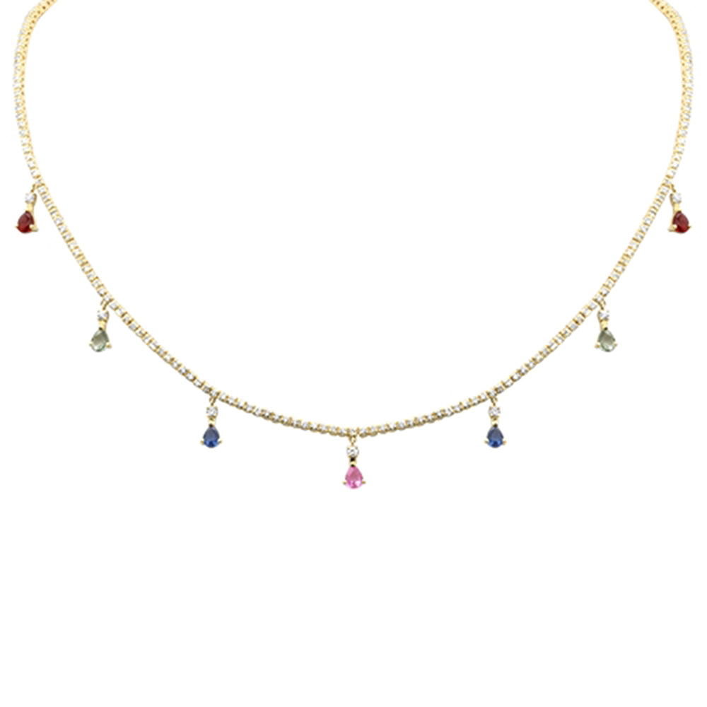 SPECIAL! 3.56ct G SI 14K Yellow Gold Diamond & Multi Color Gemstone Tennis Necklace 14" + 2" Long