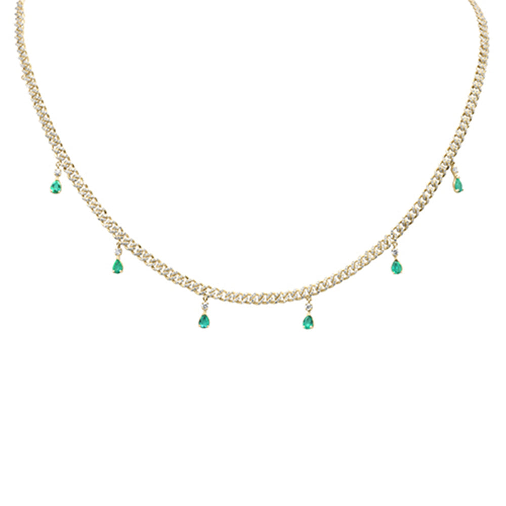 SPECIAL! 2.22ct G SI 14K Yellow Gold Diamond & Emerald Gemstone Dangling Cuban Necklace 14"+2" EXT