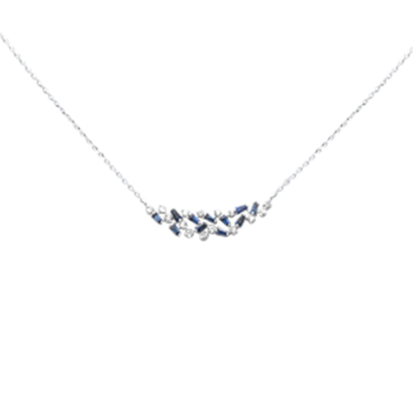 SPECIAL! .45ct F SI 14K White Gold Diamond & Blue Sapphire Pendant Necklace 16" + 2" Long