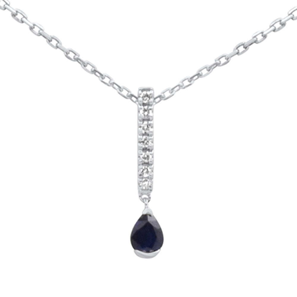 .28ct G SI 14K White Gold Diamond & Blue Sapphire Gemstone Pendant Necklace 18" Long Chain