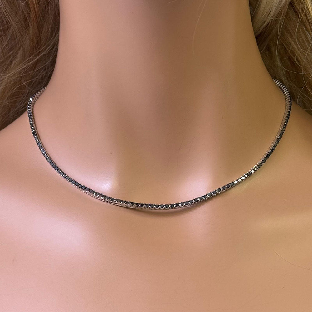 SPECIAL! 5.17ct G SI 14K White Gold Diamond Black Diamond Tennis Necklace 16" Long