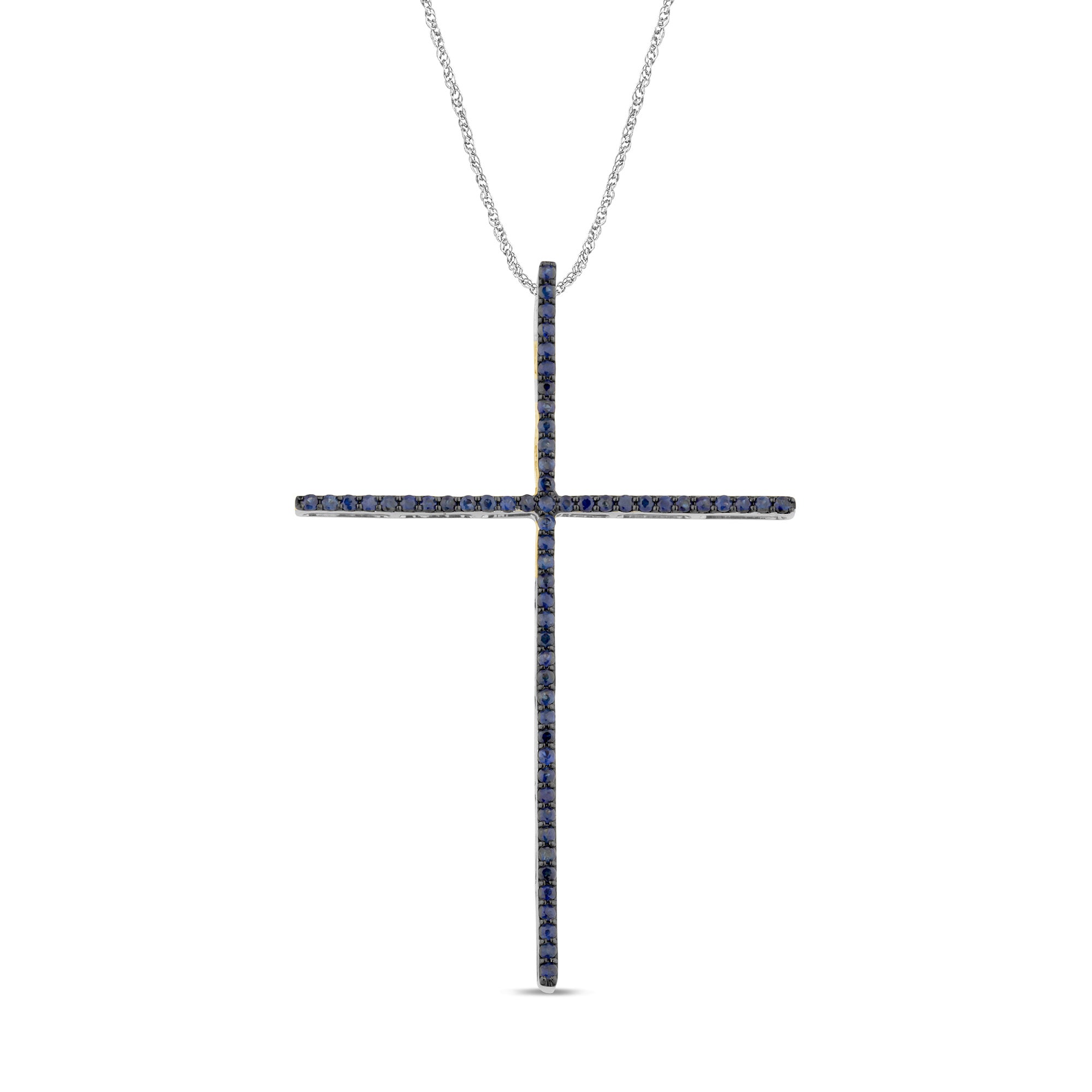 SPECIAL! .47ct G SI 14K White Gold Blue Sapphire Gemstones Cross Pendant Necklace 18" Long Chain