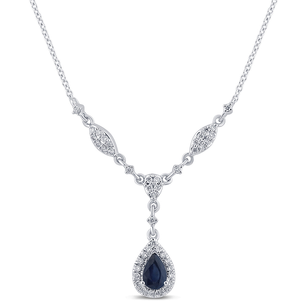 SPECIAL!.84ct G SI 14K White Gold Diamond & Blue Sapphire Gemstone Drop Pendant Necklace 16+2" Ext Long