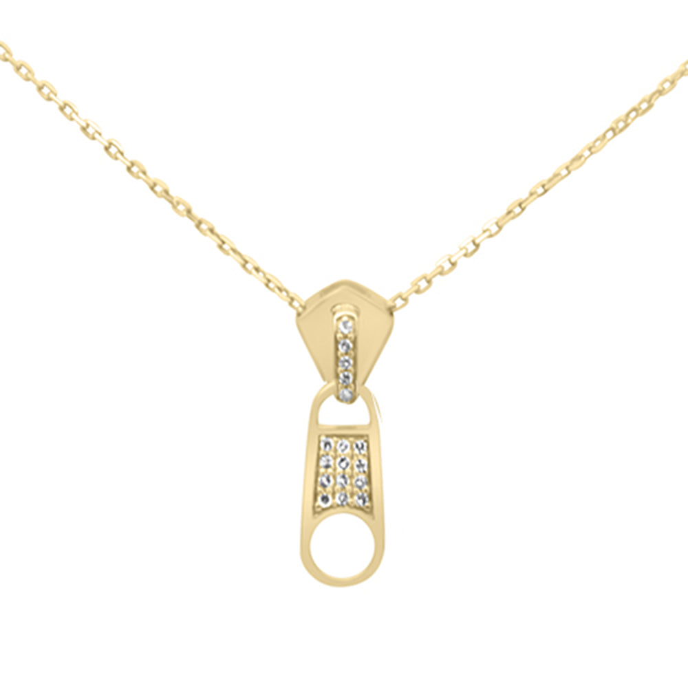 SPECIAL! .08ct G SI 14K Yellow Gold Diamond Zipper Style Pendant Necklace 18" Long Chain