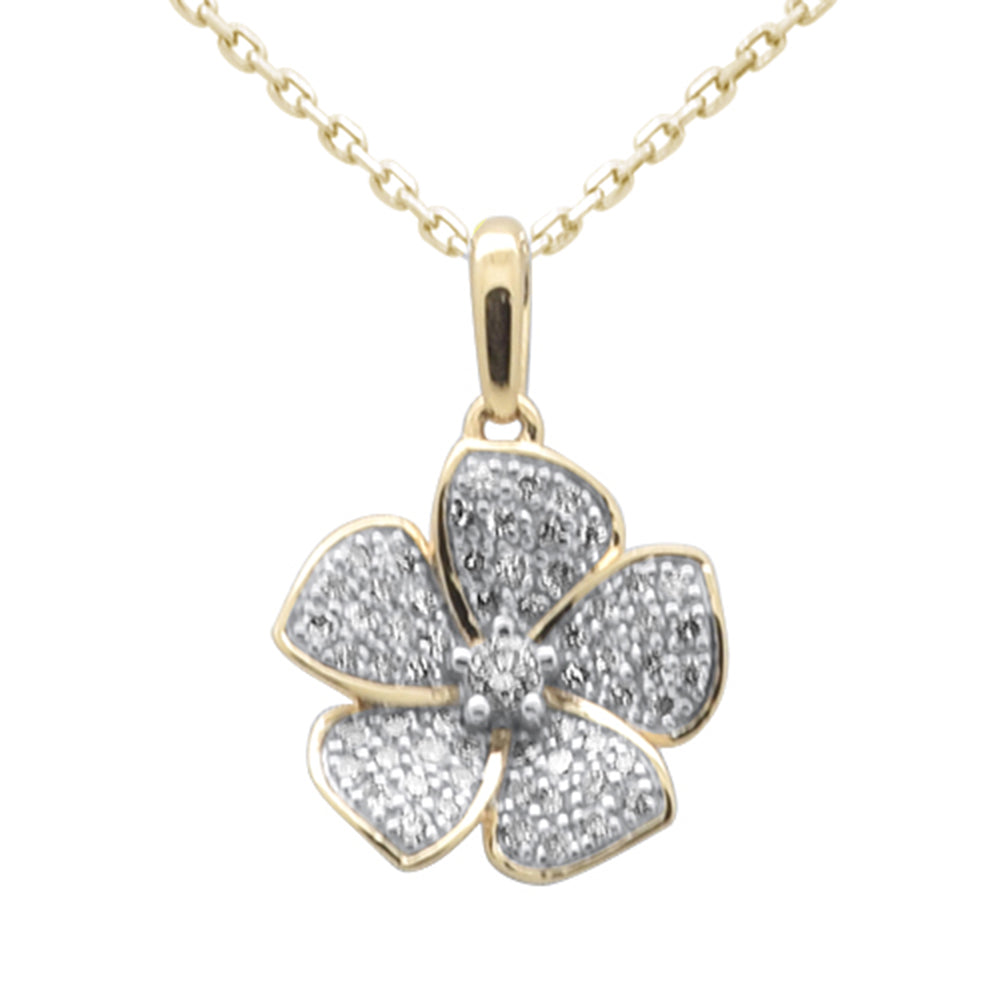 SPECIAL!.32ct G SI 14K Yellow Gold Diamond Flower Pendant Necklace 18" Long