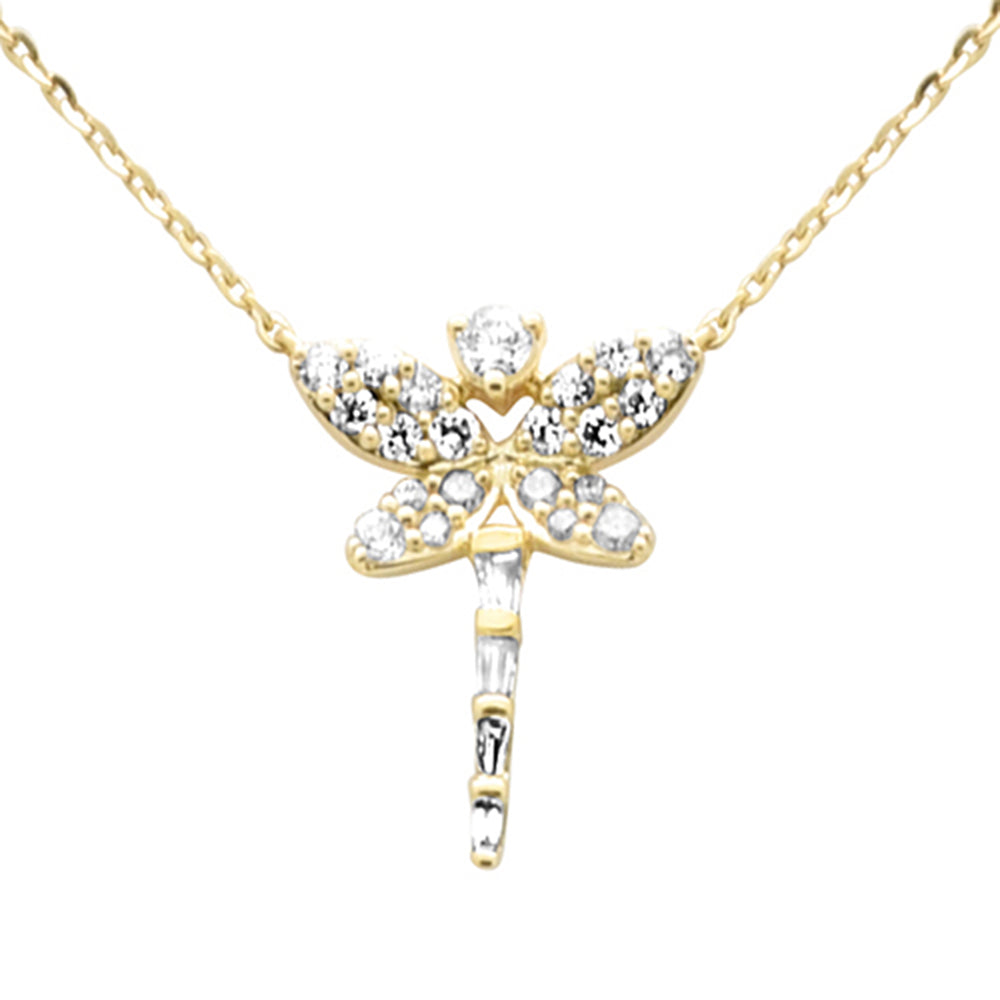 SPECIAL!.23ct G SI 14K Yellow Gold Diamond Round & Baguette Dragonfly Pendant Necklace 16+2" Ext