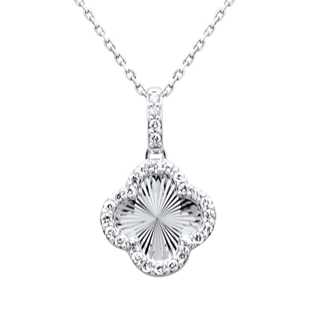 SPECIAL!.24ct G SI 14K White Gold Diamond Clover Pendant Necklace 18" Long Chain