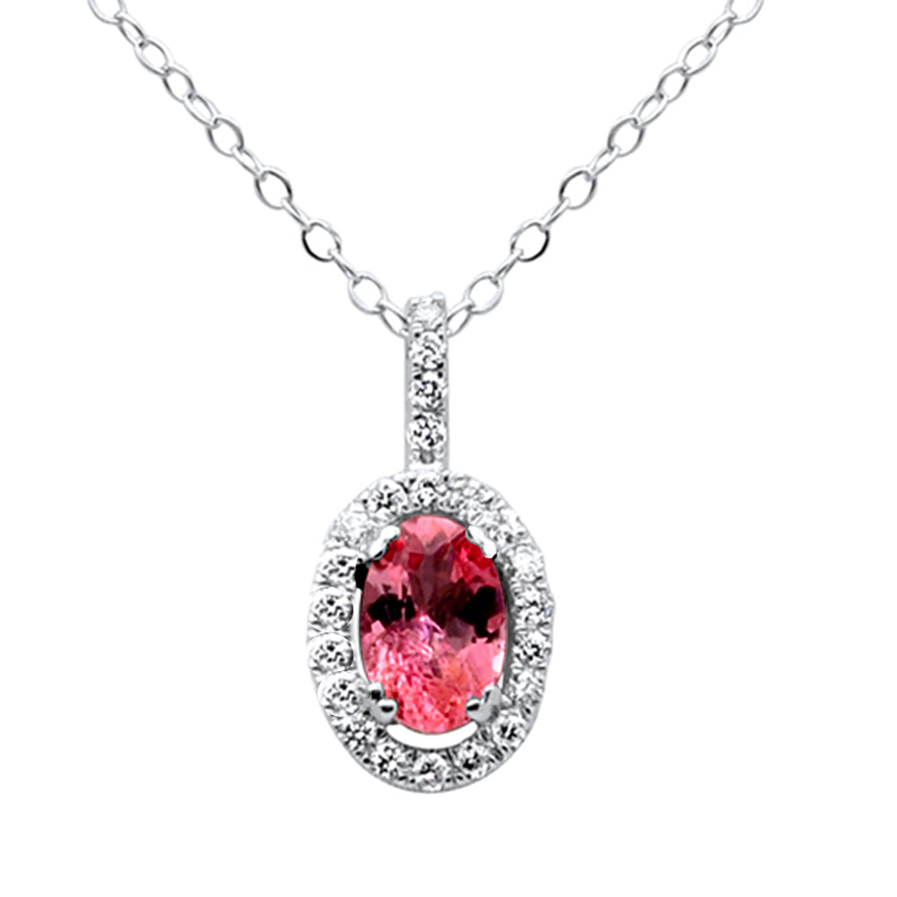 SPECIAL! .81ct G SI 14K White Gold Diamond & Pink Sapphire Gemstone Pendant Necklace 18"