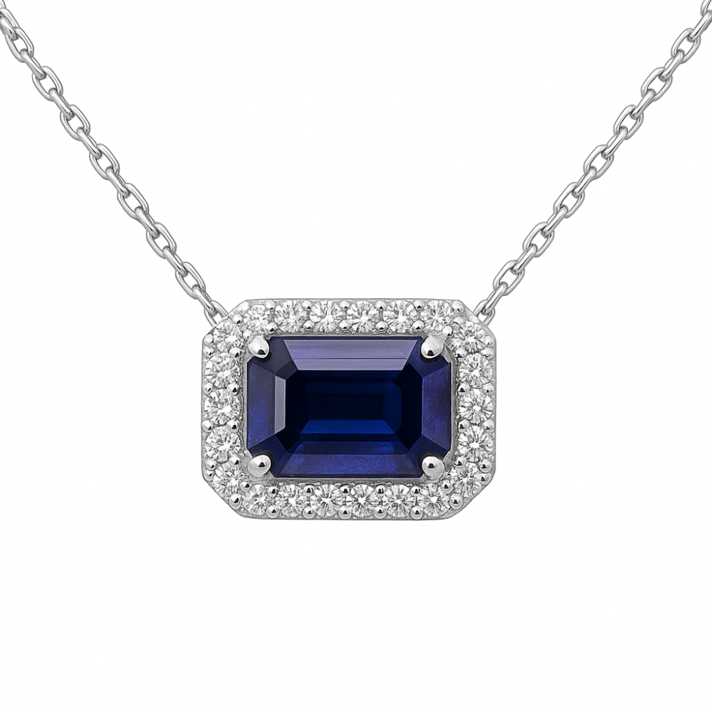 SPECIAL!1.13ct G SI 14K White Gold Diamond & Blue Sapphire Gemstone Pendant Necklace 18" Chain