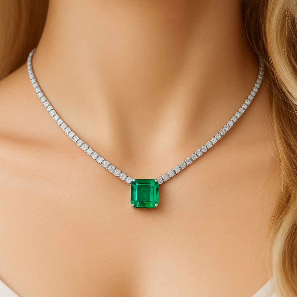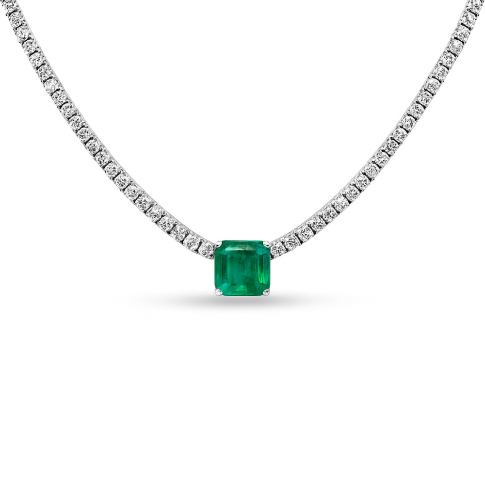 SPECIAL!16.50ct G SI 14K White Gold Diamond & Emerald Gemstone Tennis Necklace 16" Long