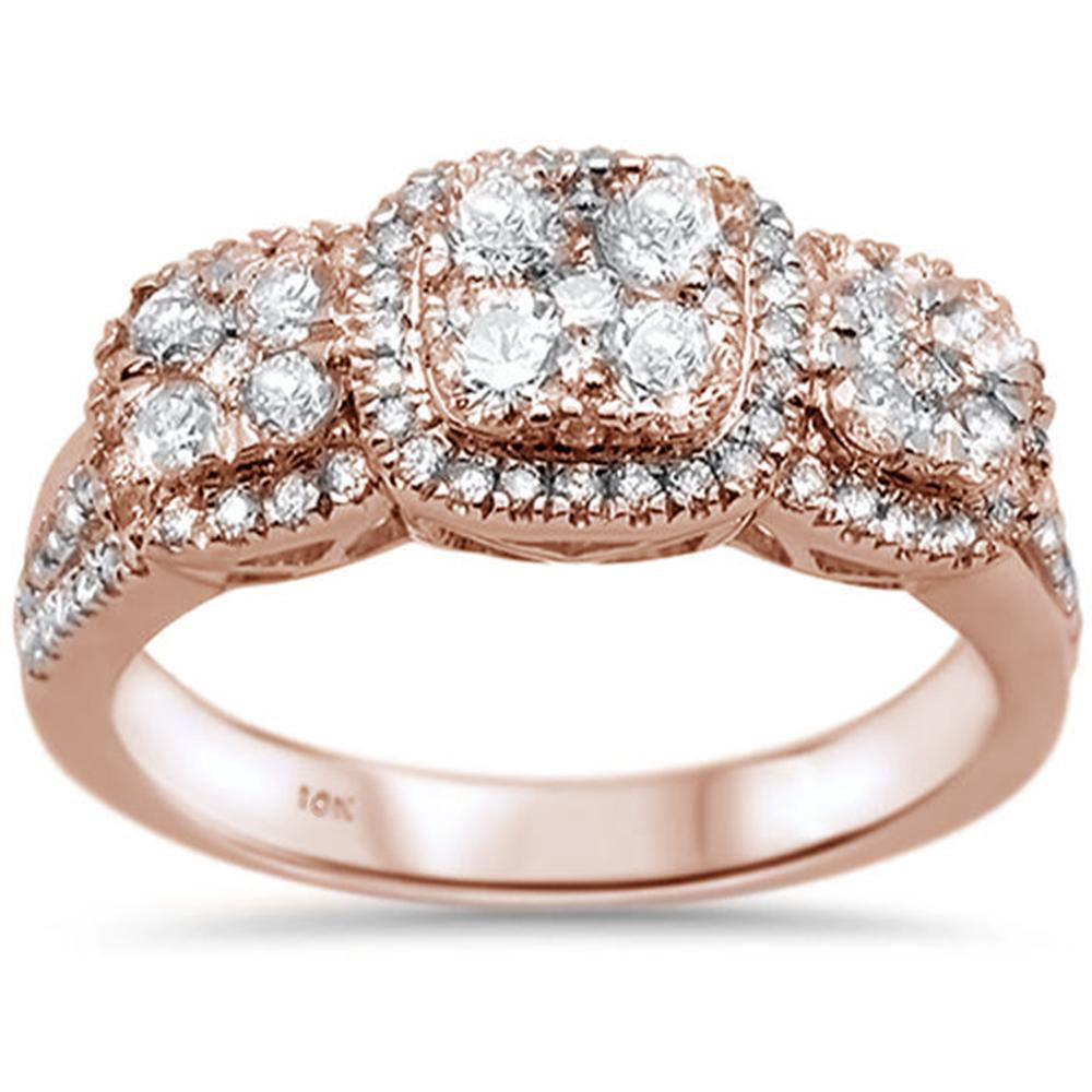 DIAMOND CLOSEOUT! .92ct 10K Rose Gold Round Diamond Three Stone Ring Size 6.5