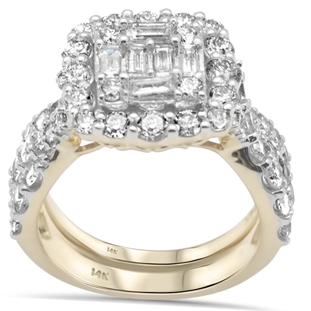 DIAMOND CLOSEOUT! 3.06ct G SI 14K Yellow Gold 2pcs Round & Baguette Diamond Engagement Ring