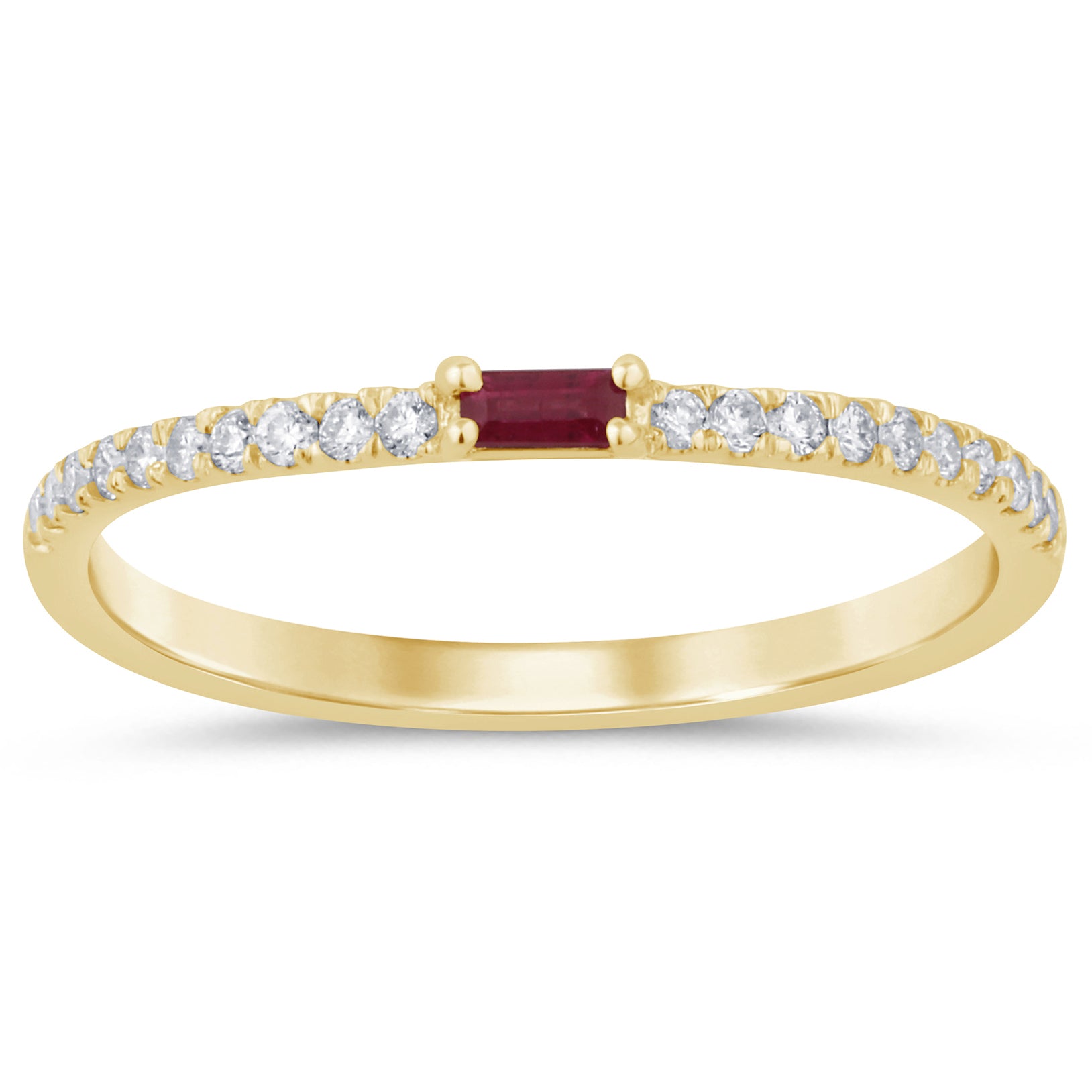 .22ct G SI 14K Yellow Gold Diamond & Ruby Gemstone Stackable Band Ring Size 6.5