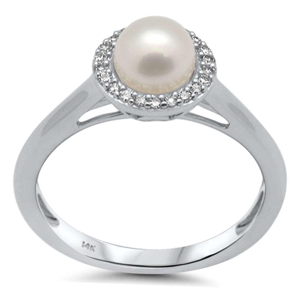SPECIAL! .10ct G SI 14K White Gold Diamond Pearl & Diamond Ring Band