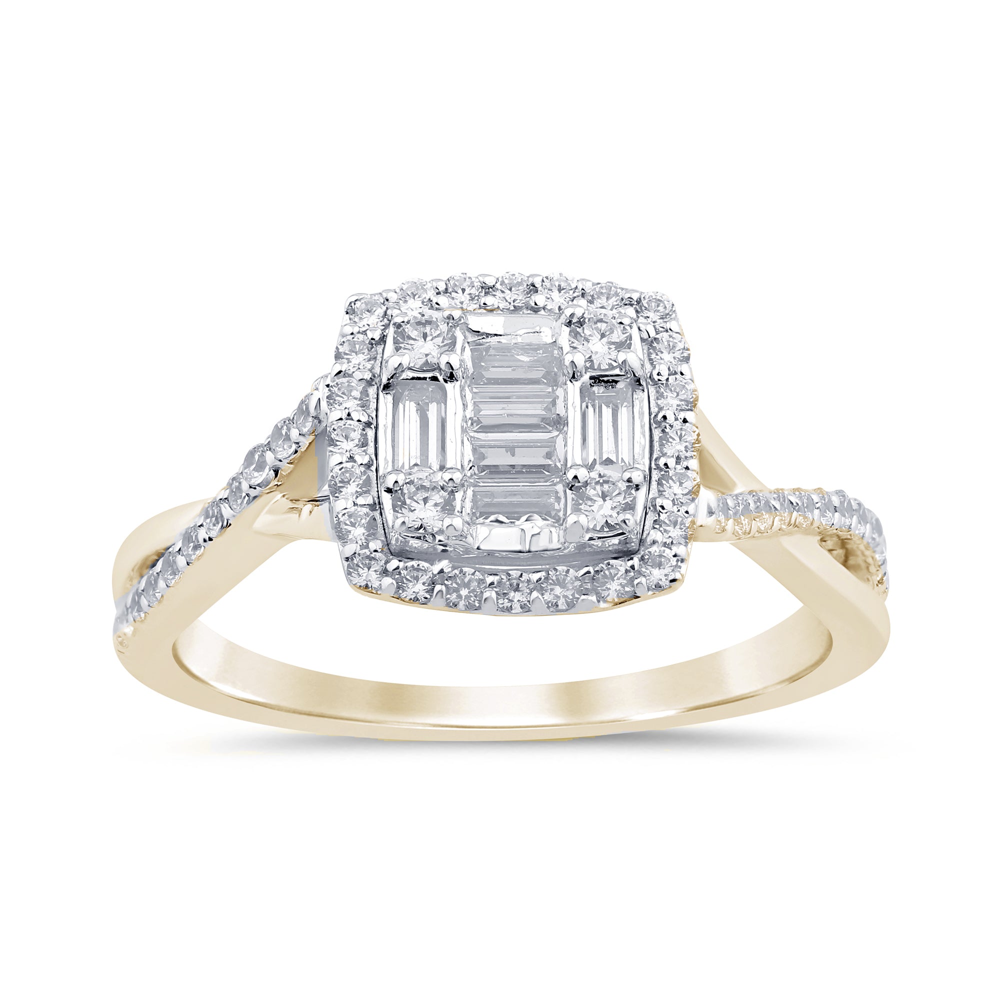 SPECIAL!.49ct G SI 14K Yellow Gold Round & Baguette Diamond Engagement Ring Size 6.5