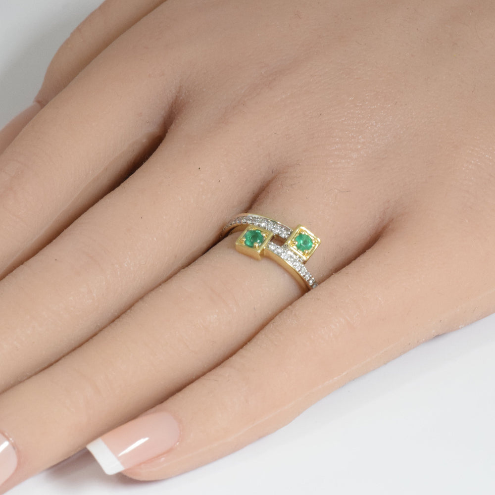 SPECIAL! .34ct G SI 14K Yellow Gold Diamond & Green Emerald Wrap Around Band Ring Size 6.5