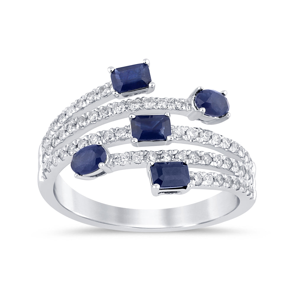 SPECIAL! 1.14ct G SI 14K White Gold Diamond & Blue Sapphire Gemstones Wrap Around Band Ring Size 6.5