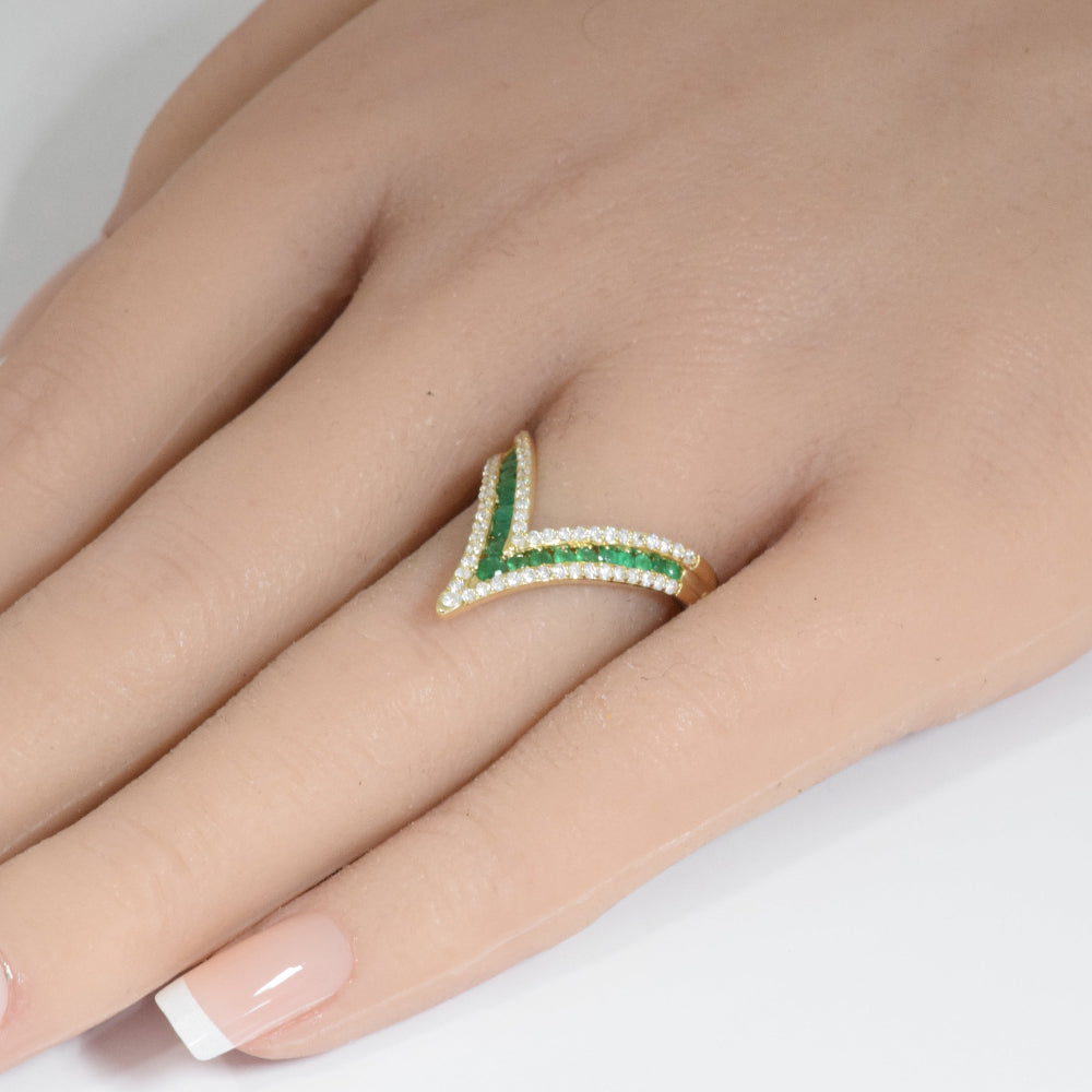 - Stone Count: 56 Round Diamonds & 19 Emeralds