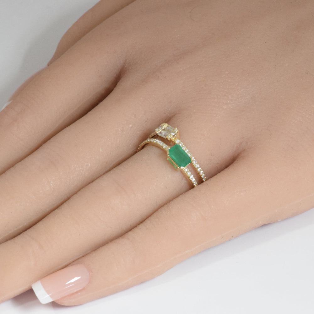 SPECIAL! .92ct G SI 14K Yellow Gold Diamond & Emerald Gemstones Engagement Ring Size 6.5