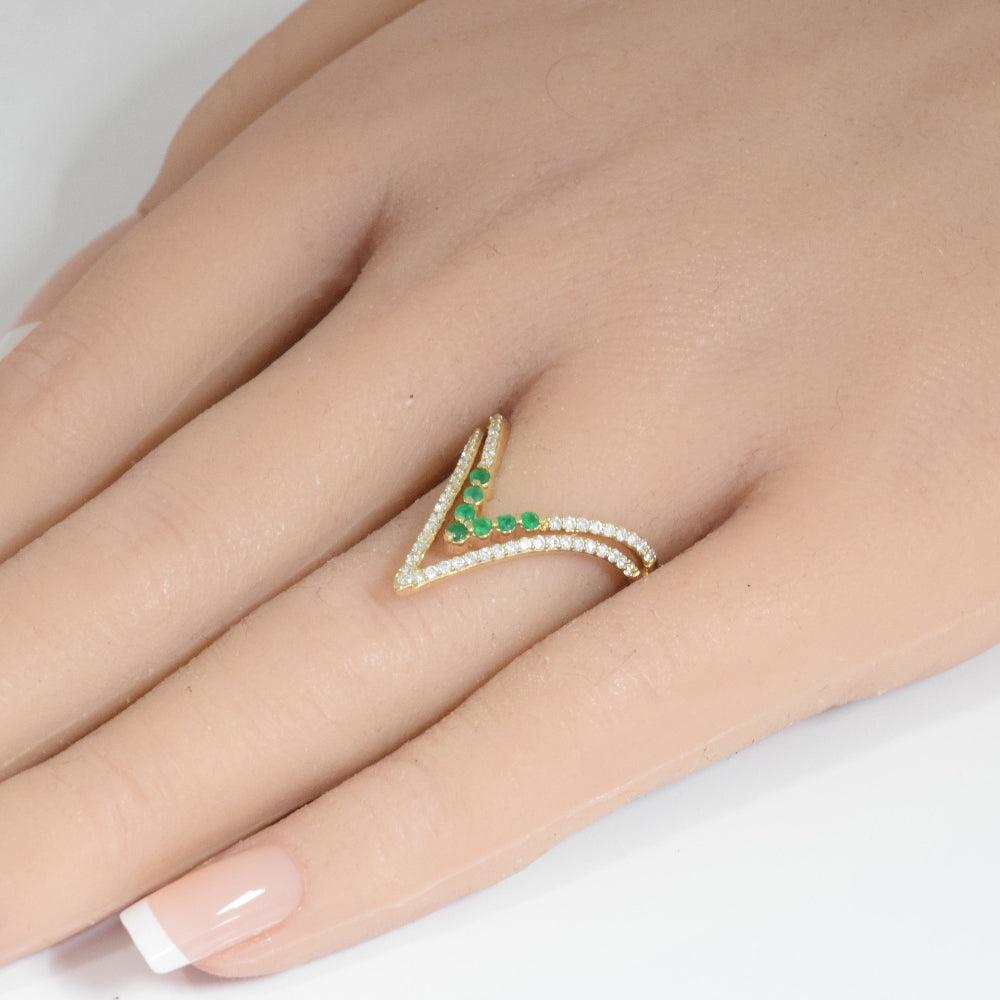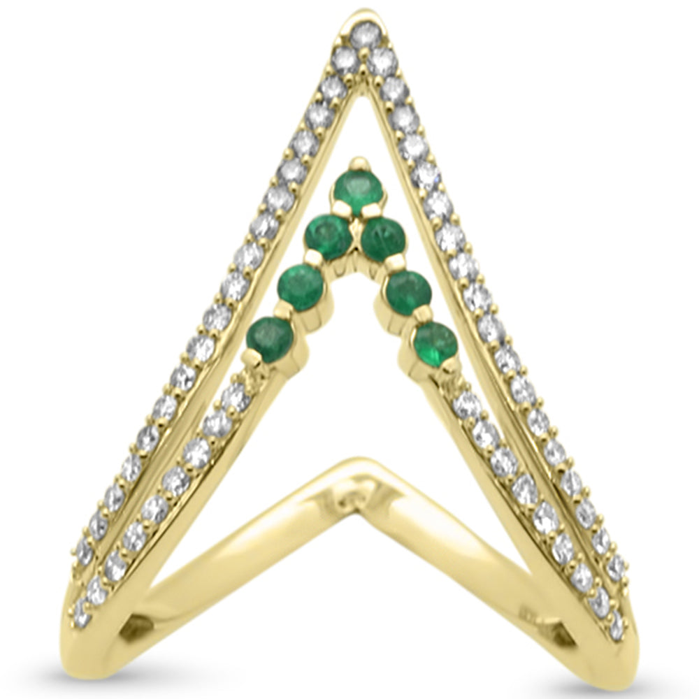 SPECIAL! .46ct G SI 14K Yellow Gold Diamond & Emerald "V" Shaped Gemstone Band Ring Size 6.5