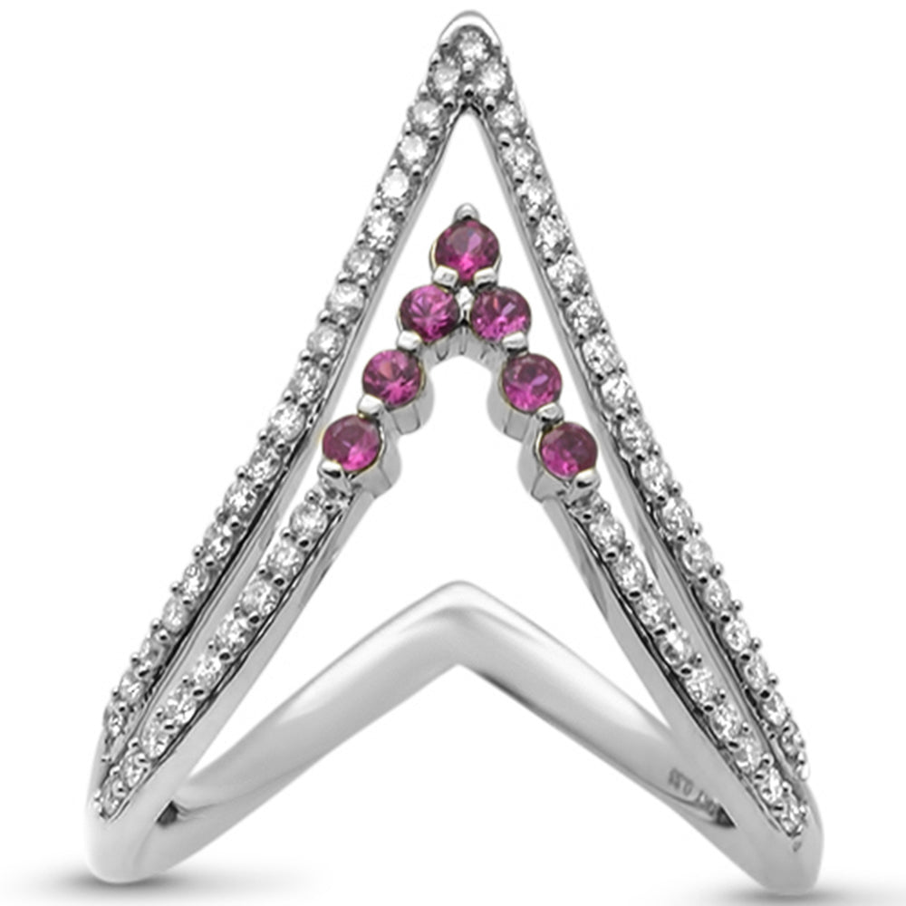 SPECIAL! .52ct G SI 14K White Gold Diamond & Ruby "V" Shaped Gemstone Band Ring Size 6.5