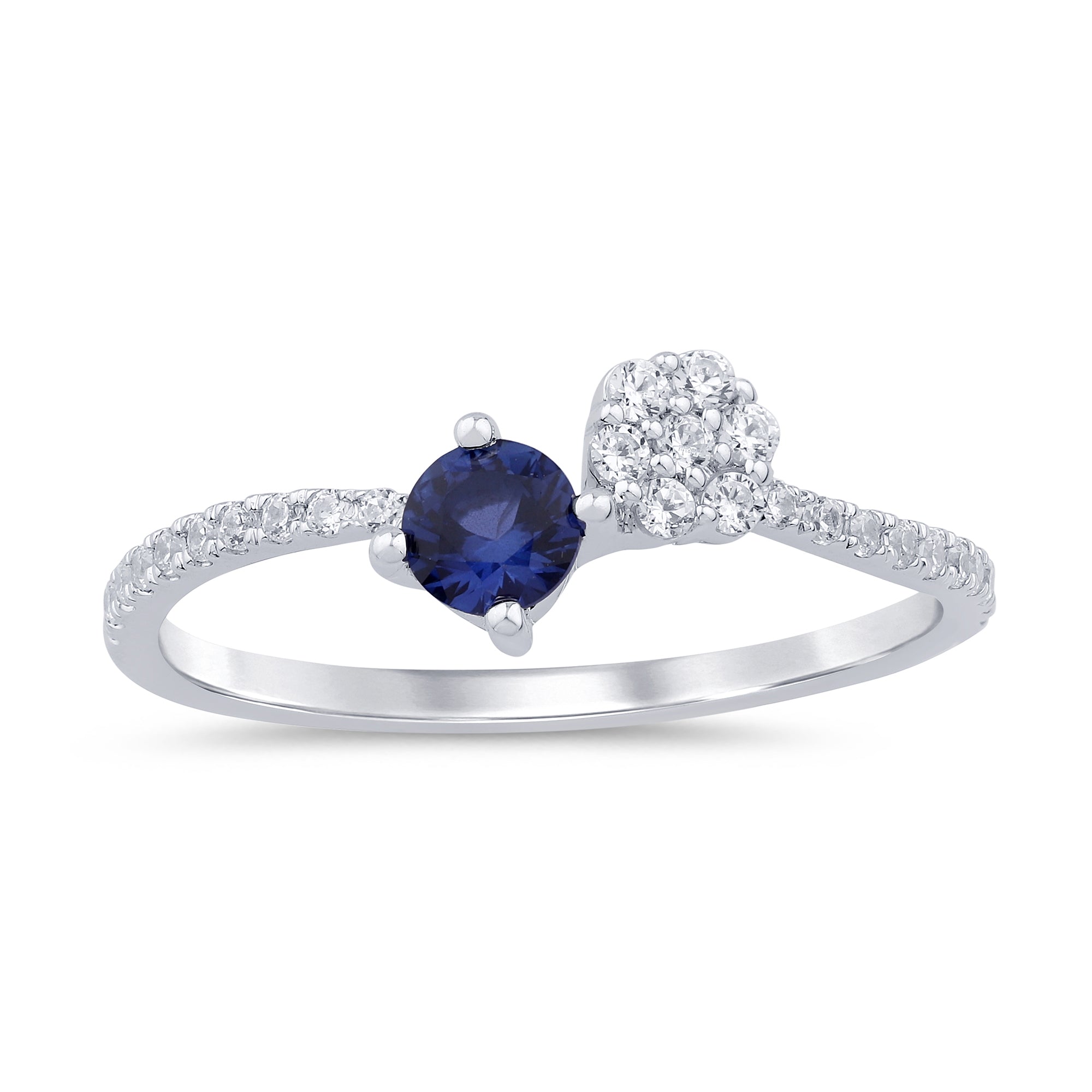 - Stone Count: 27 Round Diamonds & 1 Blue Sapphire