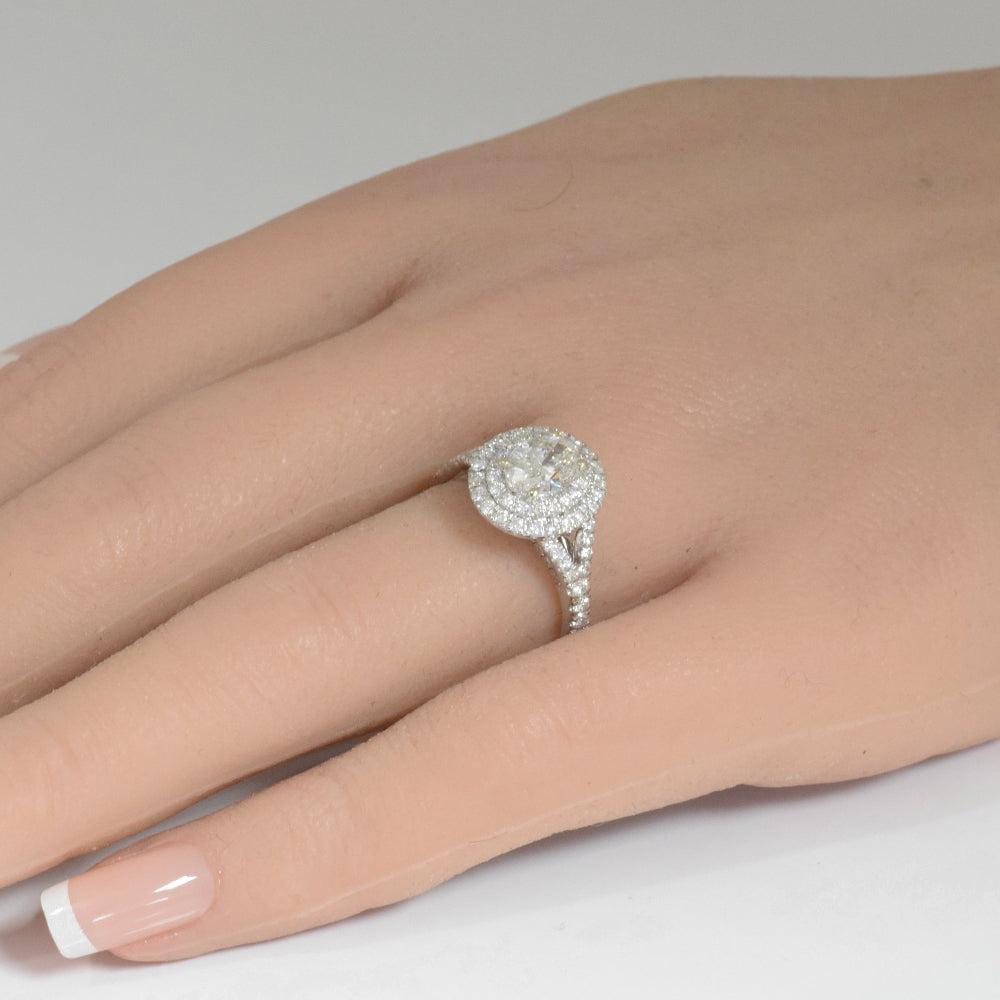 SPECIAL!1.87ct G SI 14K White Gold Double Halo Oval Shape Diamond Engagement Ring Size 6.5