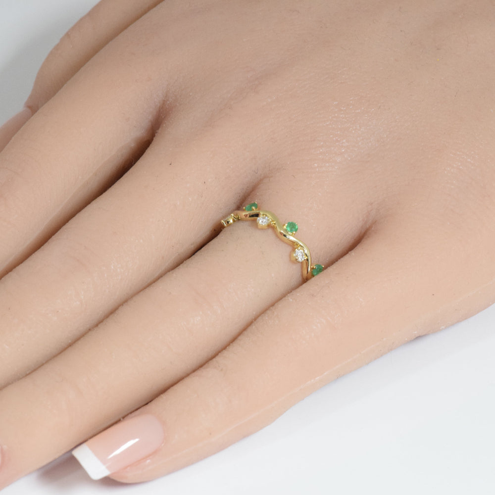 .20ct G SI 14K Yellow Gold Diamond & Emerald Gemstones Band Ring Size 6.5
