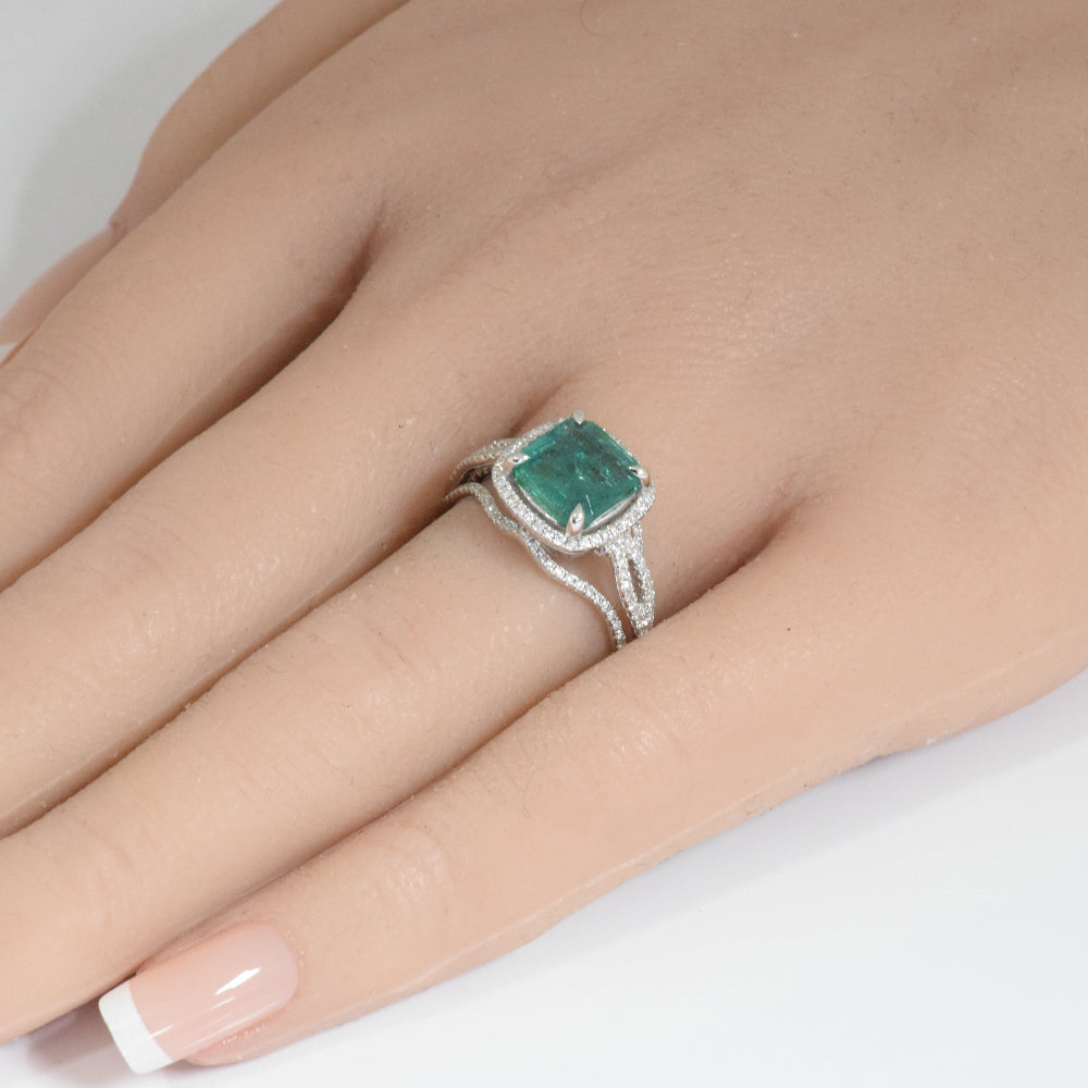 SPECIAL! 2.87ct G SI 14K White Gold Diamond & Natural Emerald Gemstone Ring Size 6.5