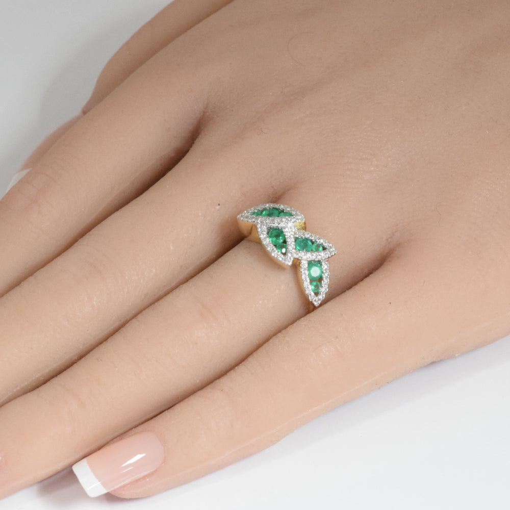 SPECIAL! .74ct G SI 14K Yellow Gold Diamond & Emerald Gemstone Band Ring Size 6.5