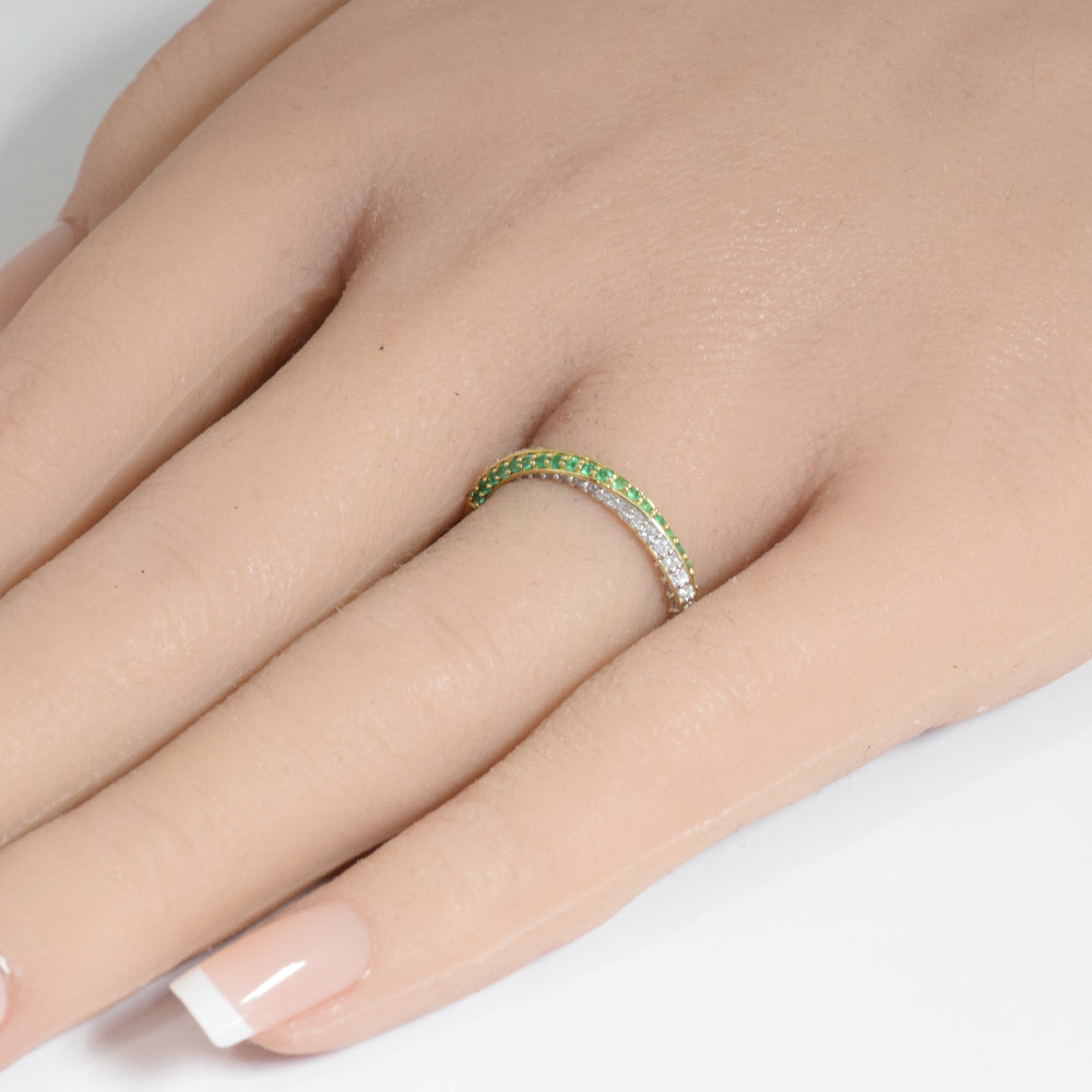 SPECIAL! .39ct G SI 14K Yellow Gold Diamond & Emerald Gemstones Band Ring Size 6.5