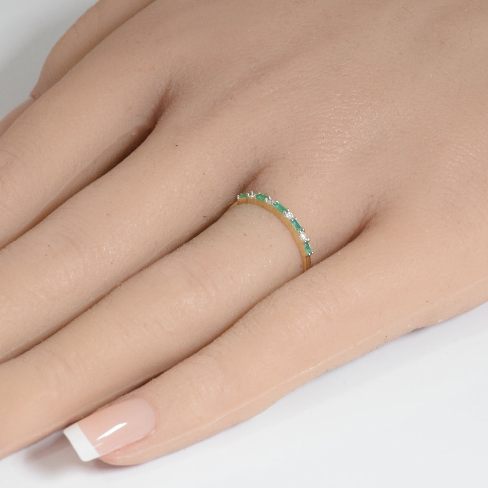 .09ct G SI 14K Yellow Gold Diamond & Emerald Gemstones Band Ring Size 6.5