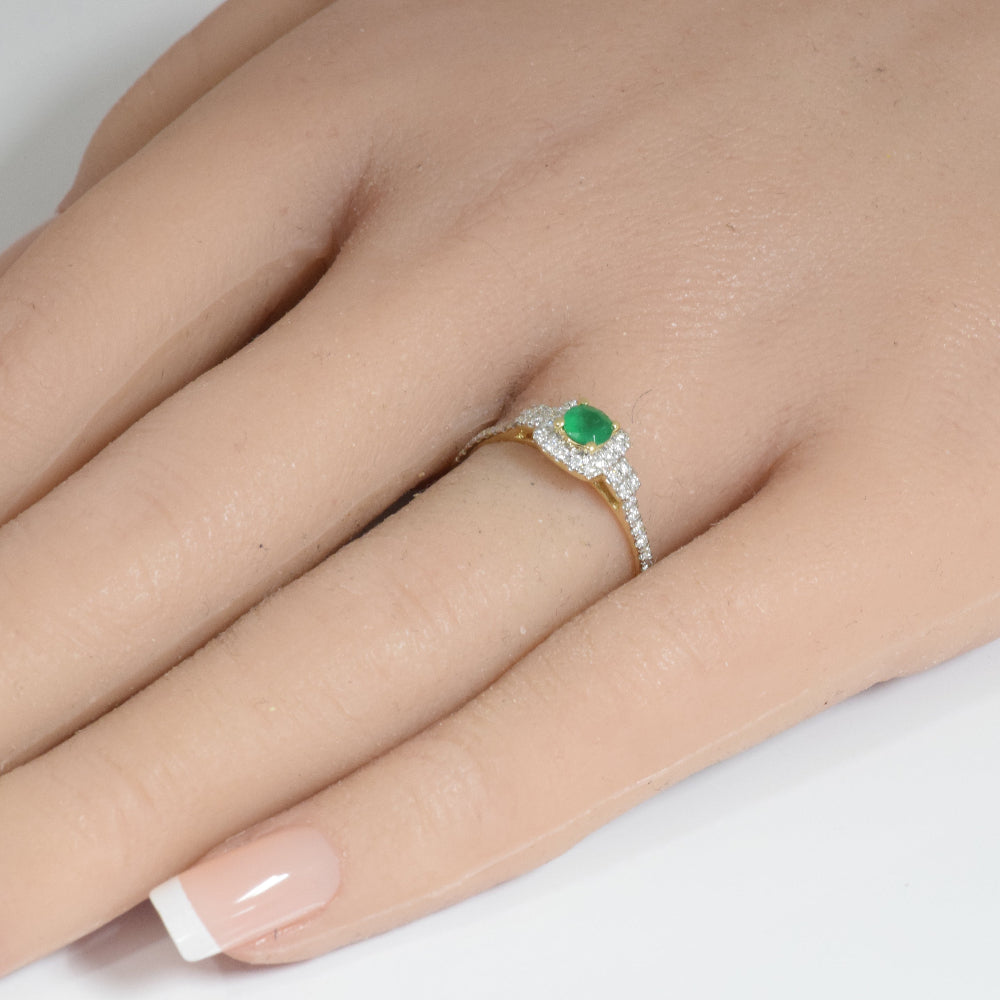 SPECIAL!.40ct G SI 14K Yellow Gold Diamond & Emerald Gemstones Engagement Ring Size 6.5