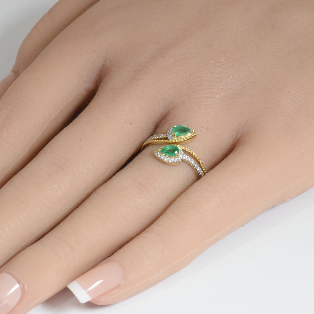 SPECIAL! .48ct G SI 14K Yellow Gold Diamond & Emerald Gemstone Wrap Around Ring Size 6.5