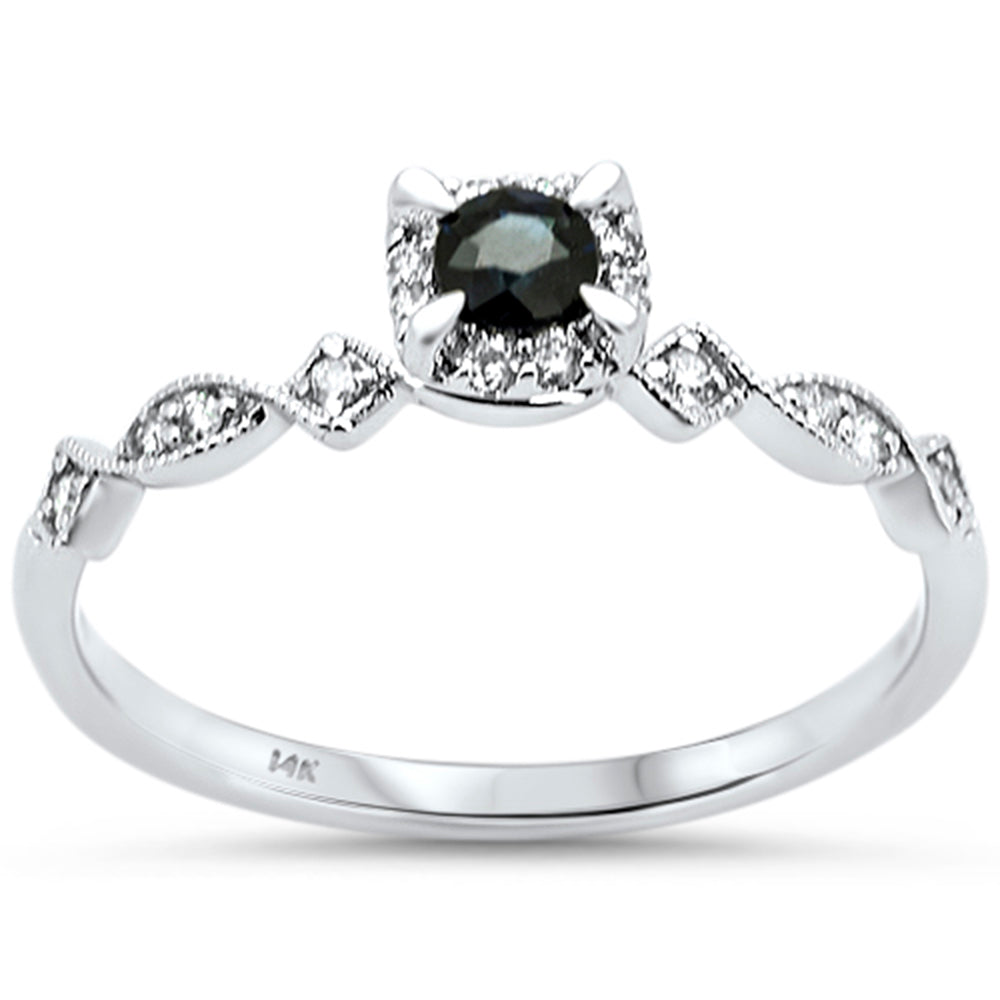 .28ct G SI 14K White Gold Diamond & Blue Sapphire Gemstones Ring Size 6.5