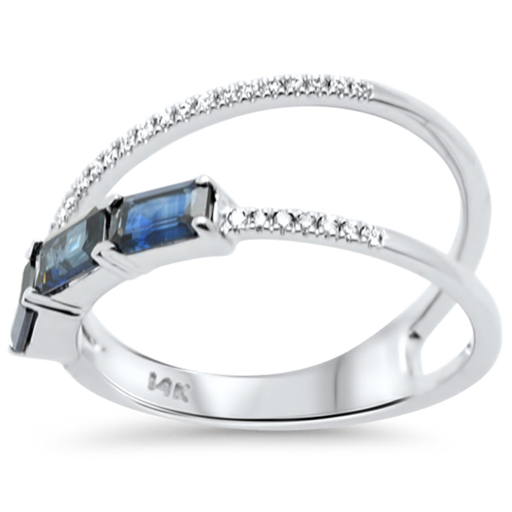 SPECIAL! .94ct G SI 14K White Gold Round Diamond & Blue Sapphire Gemstone Double Shank Band Ring Size 6.5