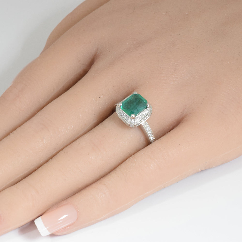 SPECIAL! 2.52ct G SI 14K White Gold Diamond & Emerald Gemstone Ring Size 6.5