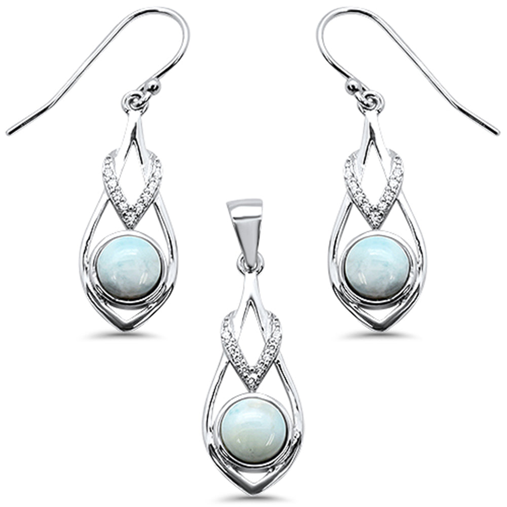 Natural Larimar & Cubic Zirconia .925 Sterling Silver Pendant & Earring Set